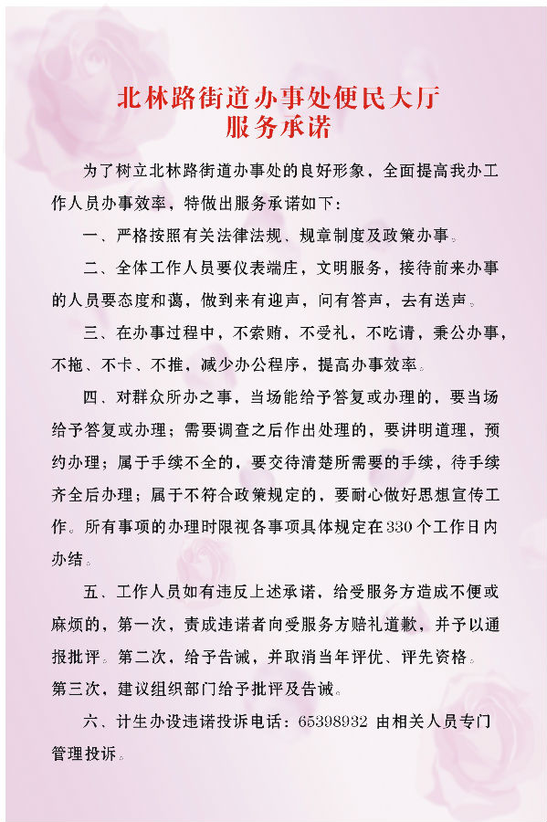北林路街道办事处便民大厅服务承诺