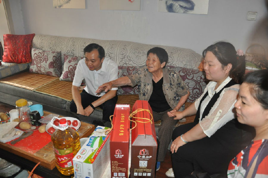 近日,街道党工委书记周纪斌、副书记冯晓翠在教育社区党委书记王红丽等人的陪同下一起到黄河路106号院杨希銮家中进行了慰问,并带去了慰问品,周书记与老党员杨阿姨亲切拉家常,并详细询问了她的身体状况,嘱咐她要注意休息,保重身体。