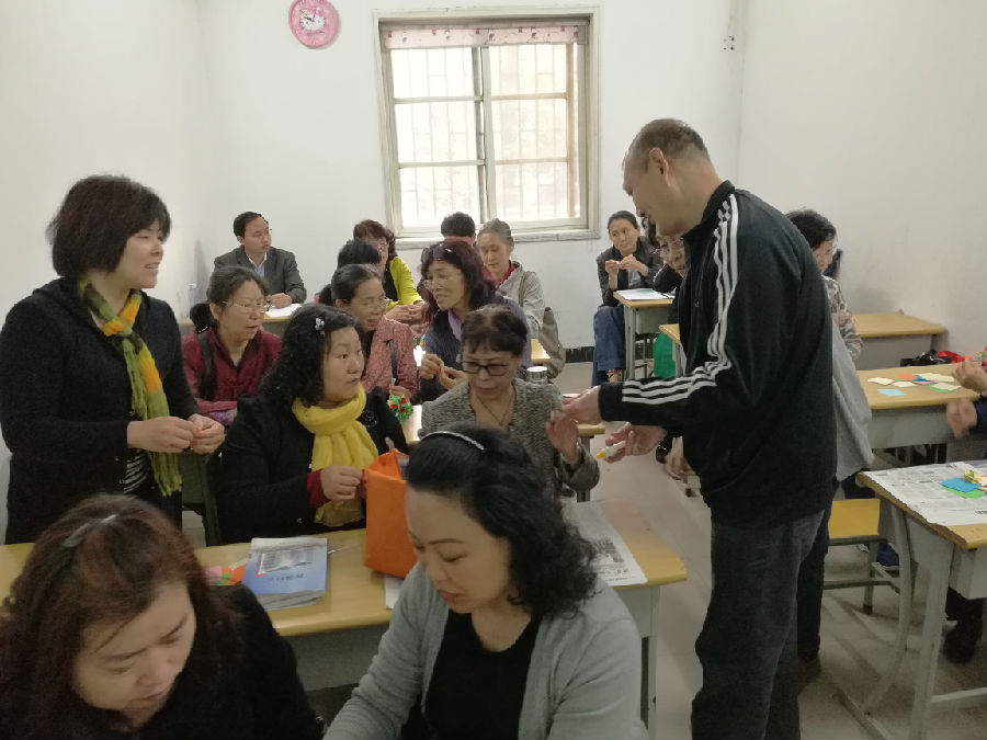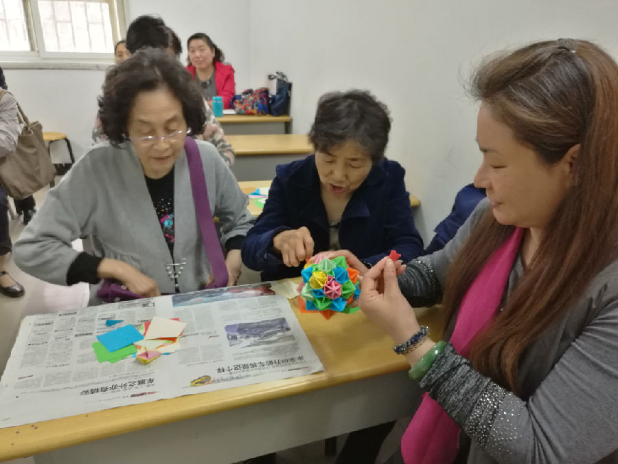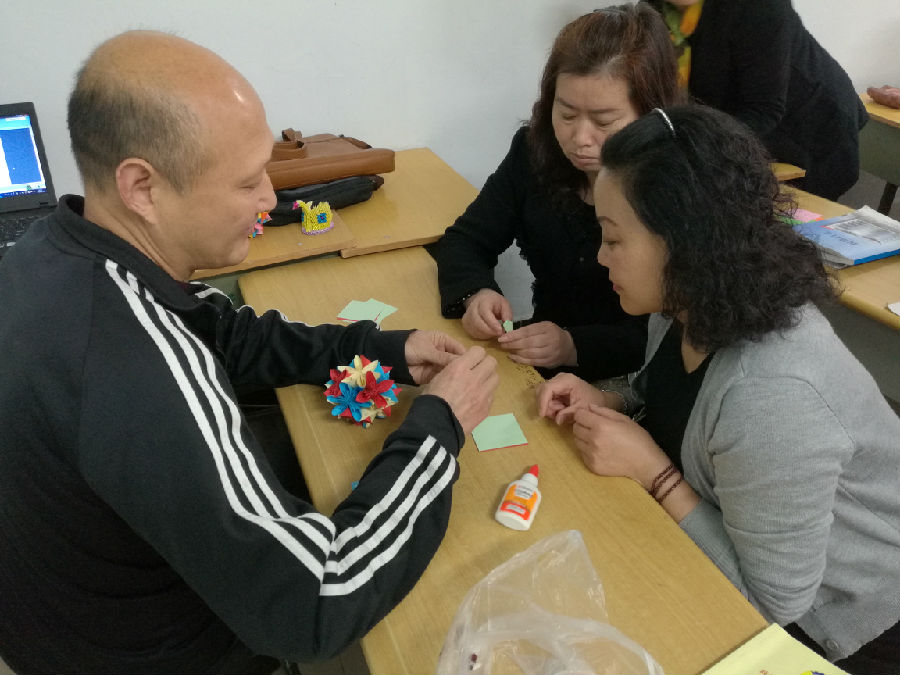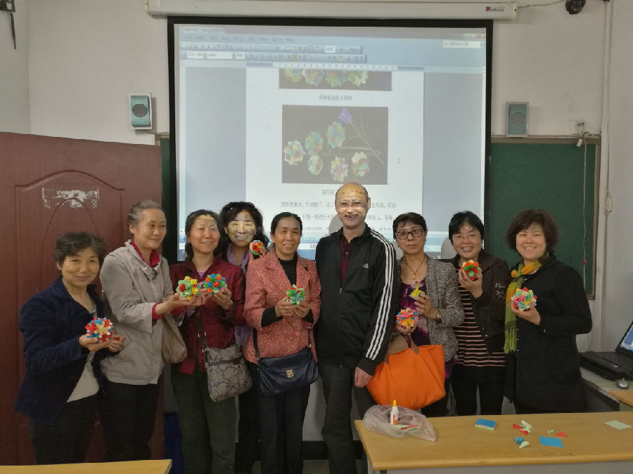 此次优质课参评有教育社区老年英语班和蔡老师手工班两项课程。课上,老年英语班的徐老师用幽默诙谐的语言和滑稽夸张的肢体动作征服了在场的每一位学员和评委,语言本身就是一门富有表现力的工具,徐老师毫无保留的把对于英文的感悟和口语小技巧在轻松的气氛中巧妙的传授给学员们。蔡老师的手工课更是让大家感受到了,中国传统手工制作的魅力,就用一张张不足巴掌大的五彩小纸片,不一会的功夫就完成一个精美别致的绣球,真是让人爱不释手。