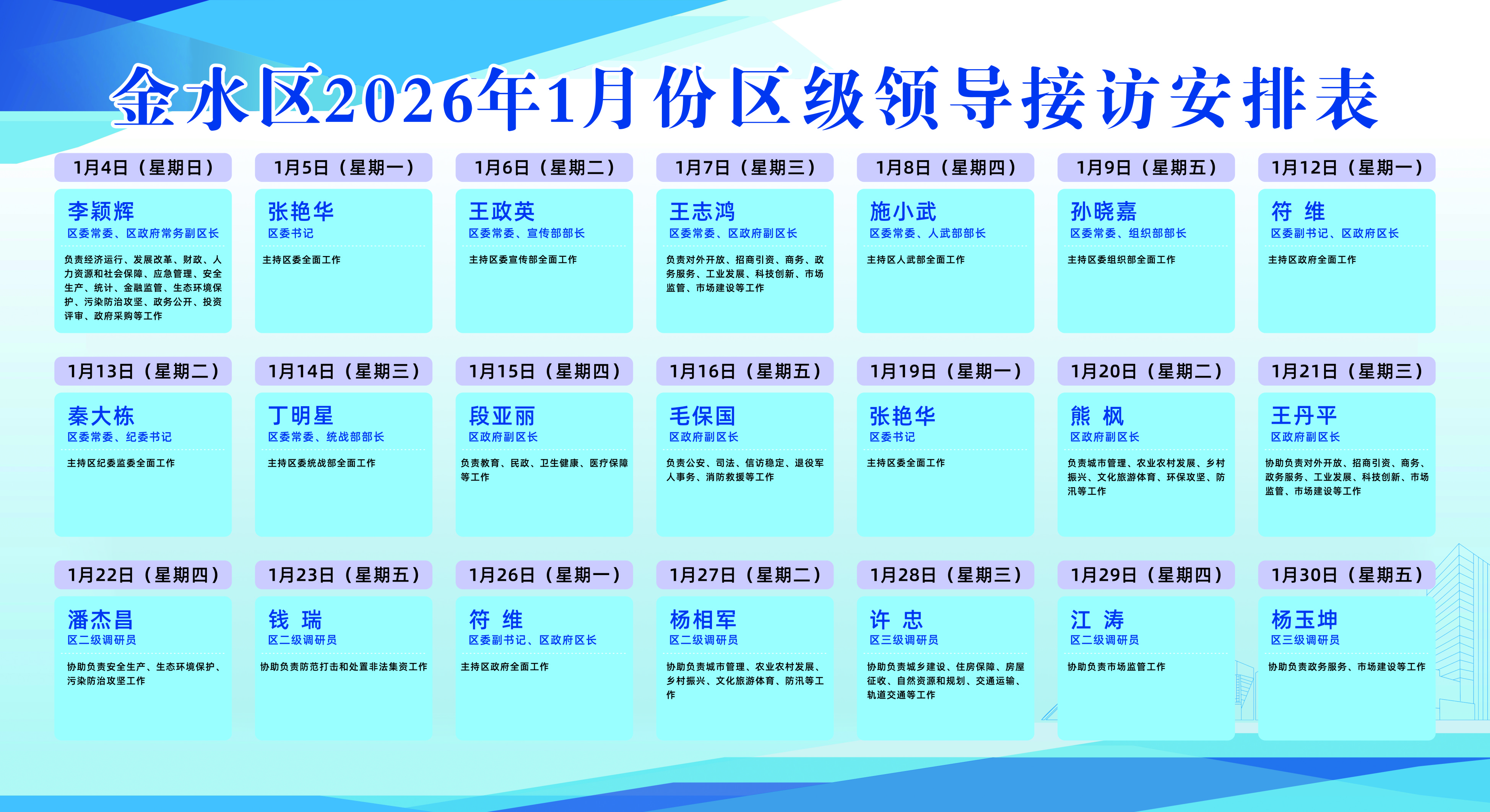 金水区2026年1月份区级领导接访安排